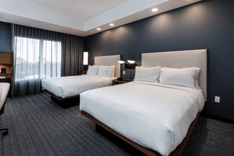 Hospitality Depot supported this project with full-scale FF&E procurement, outfitting everything from guest rooms and bathrooms to public spaces like the lobby, lounge, breakfast area, and conference room. The result is a clean, modern aesthetic that balances comfort and functionality for every area of the hotel.